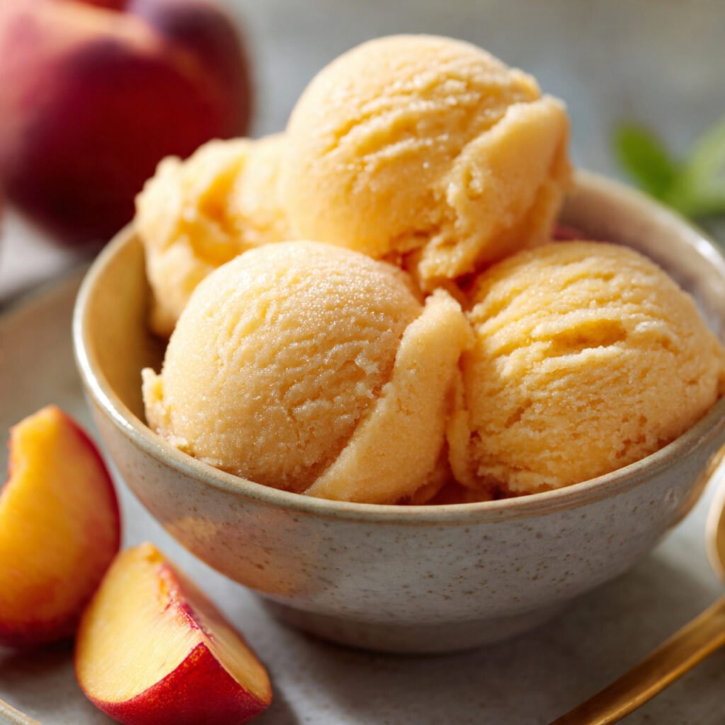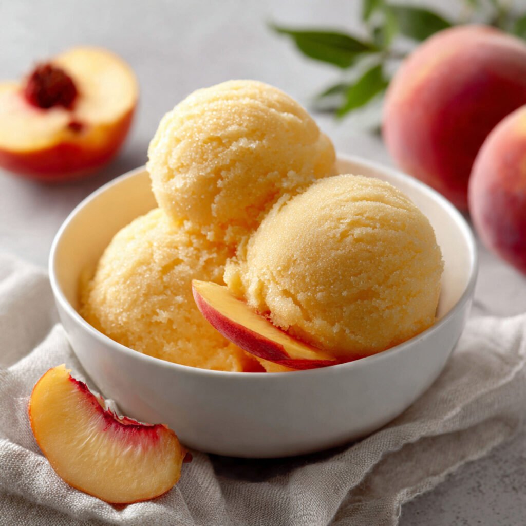 Peach sorbet is a light, refreshing frozen treat that captures the sweet, juicy flavor of ripe peaches in every spoonful. This simple dessert is perfect for warm days when you want something cool and fruity without anything heavy. Made with just a few ingredients, this peach sorbet recipe is smooth, naturally vibrant, and incredibly satisfying. Whether you’re serving it after dinner or enjoying it as an afternoon treat, it’s a fresh and easy way to highlight peak-season peaches.