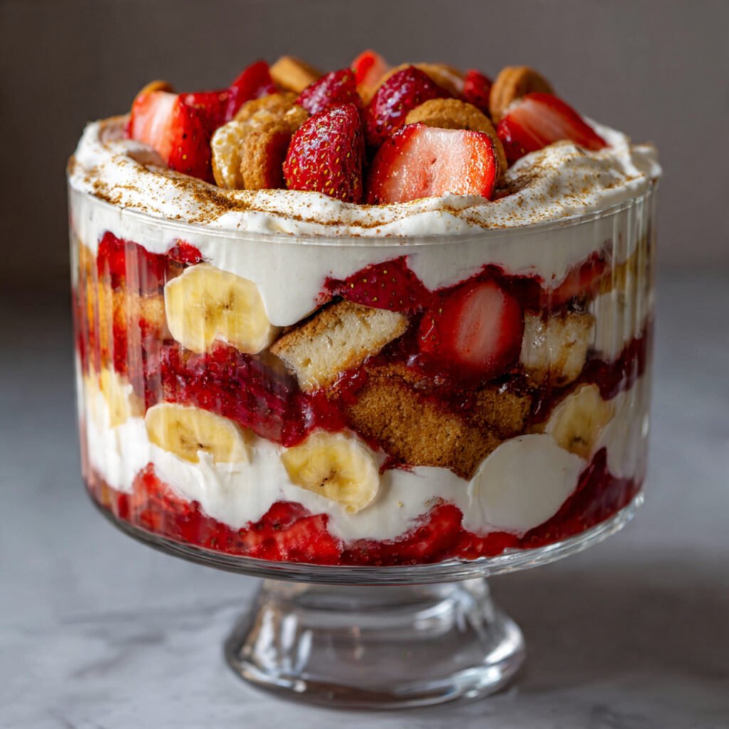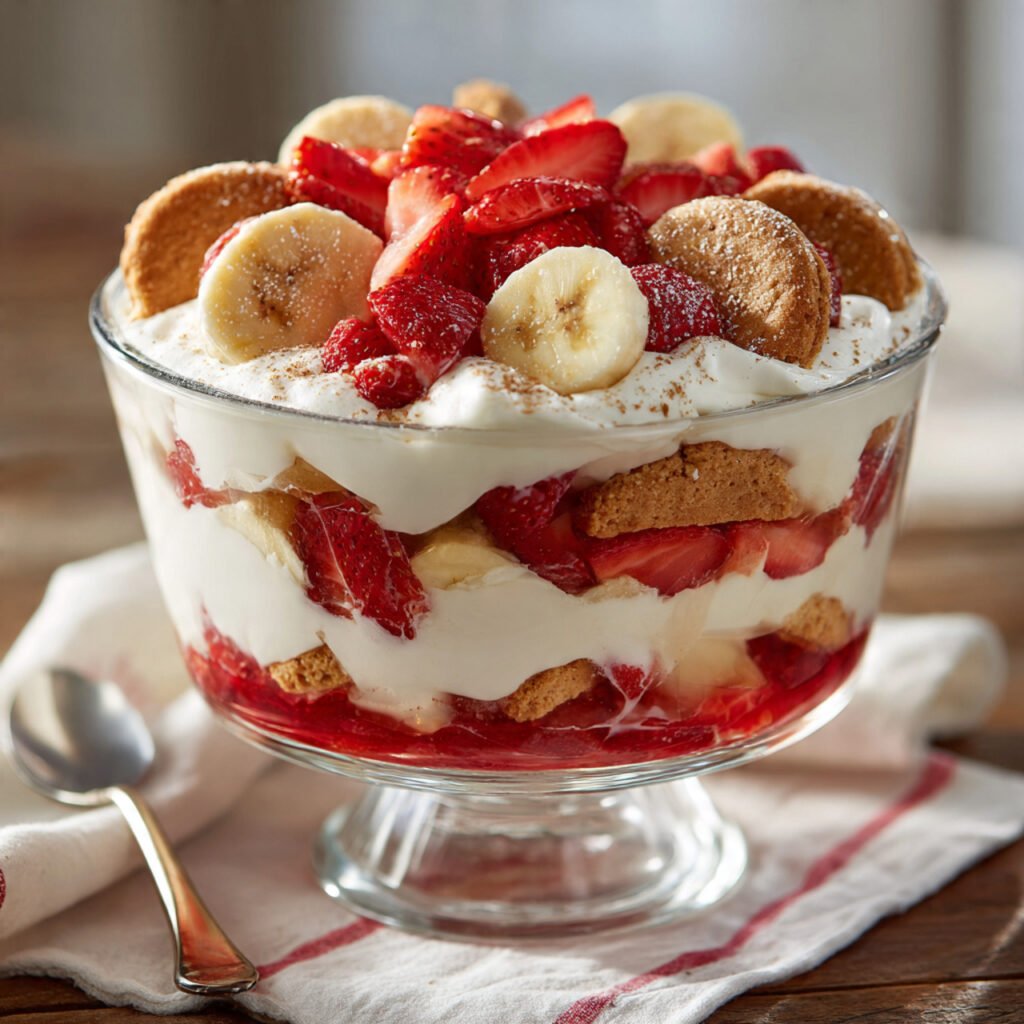 Strawberry Banana Pudding is a creamy, fruity dessert that layers fresh strawberries, ripe bananas, and silky vanilla pudding into one irresistible treat. It’s the kind of no-bake recipe that feels both nostalgic and refreshing, making it perfect for warm days, family gatherings, or quick sweet cravings. Each spoonful delivers soft cookies, luscious cream, and bursts of fresh fruit flavor. Whether you’re making it ahead for a party or enjoying it straight from the fridge, this dessert is simple, comforting, and always a crowd favorite.