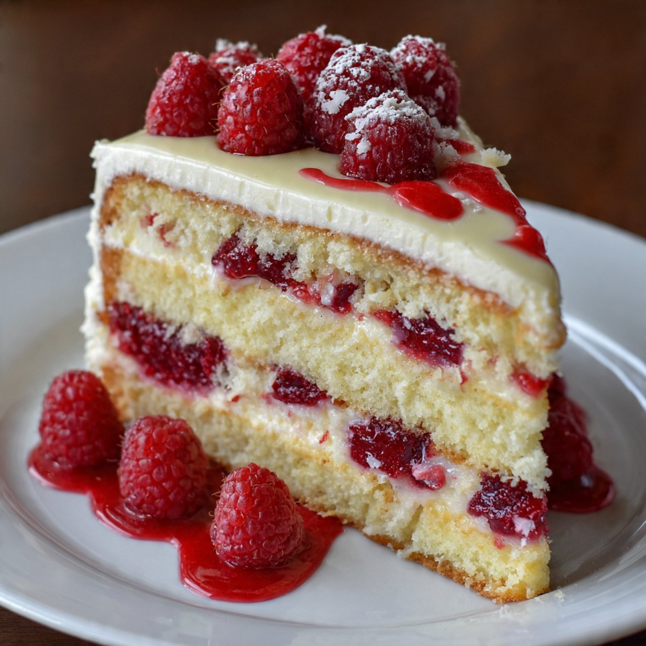This white chocolate raspberry cake is a soft, moist layered dessert combining rich white chocolate with bright, tangy raspberries. Perfect for special occasions, it delivers a beautiful balance of sweetness and fruitiness in every bite.
